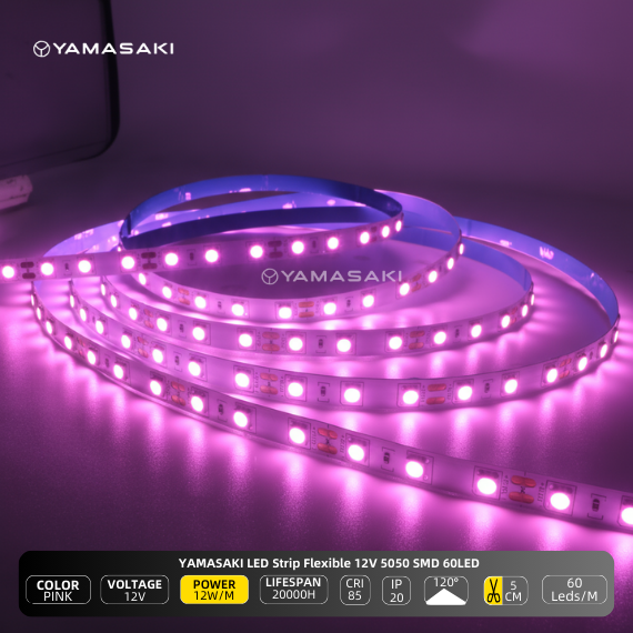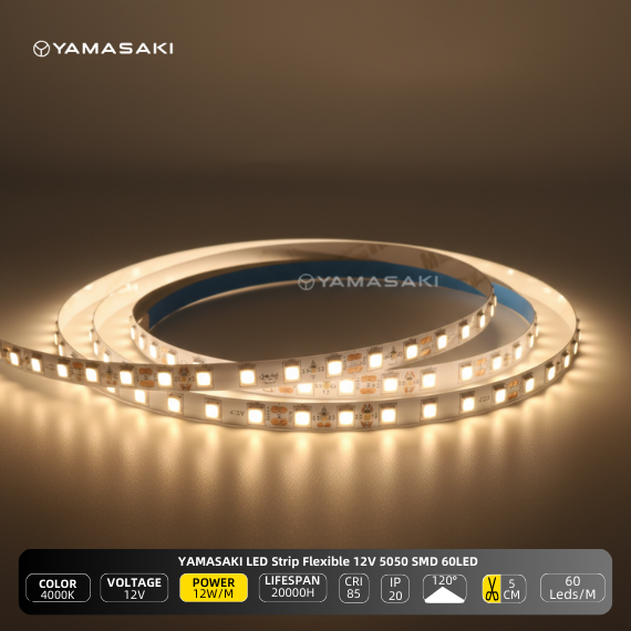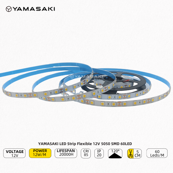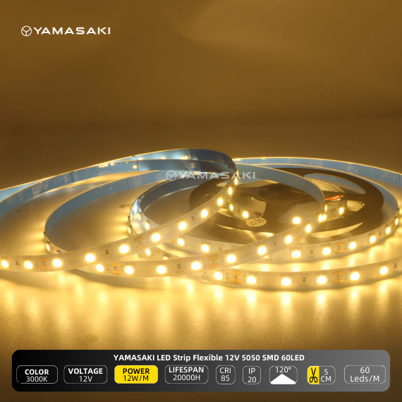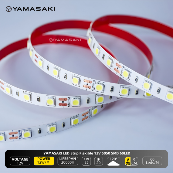 YAMASAKI LED Strip Light 12V 60LED SMD 5050 adalah solusi pencahayaan dekoratif serbaguna yang menghadirkan tampilan modern dan elegan pada setiap ruangan. Dengan teknologi SMD 5050, strip ini menghasilkan cahaya yang lebih terang dan konsisten, cocok untuk digunakan di rumah, toko, kafe, hingga proyek arsitektur.